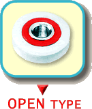 | ‚q‚b‚cTYPE (Round Grooved Tire) Plastic Bearing with round grooved type. Mainly used for noiseless sliding panel roller. The noiseless performance is equivalent to CD type. APPLICATION Fixture (Sash, Sliding Shutter) |